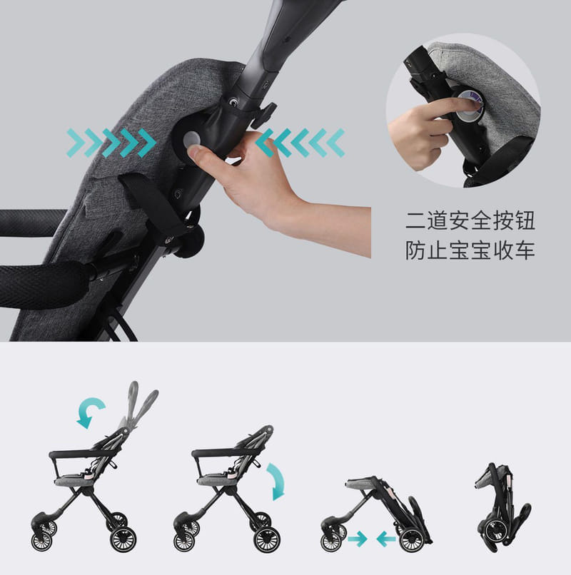 - Xe đẩy có thể gấp gọn và mang theo sau lưng như một chiếc balo. Rất tiện lợi để mang theo khi cho bé yêu đi dã ngoại, đi du lịch, đi siêu thi, công viên....