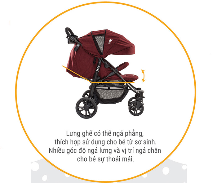 - Lưng ghế có thể ngả phẳng, thích hợp sử dụng cho bé từ sơ sinh. Bố mẹ có thể điều chỉnh lưng ghế từ nằm sang ngồi để phù hợp với trẻ nhỏ vì xe đẩy Litetrax 4 Flex LFC có nhiều góc độ ngả lưng và vị trí ngả chân cho bé sự thoải mái.