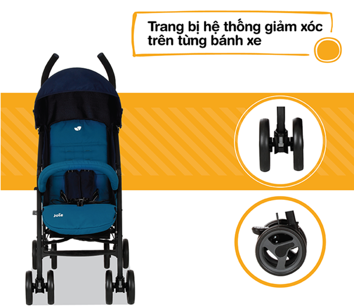 - Trang bị hệ thống giảm xóc trên từng bánh xe, cho sự di chuyển êm ái ngay cả trên bề mặt đường gồ ghề.