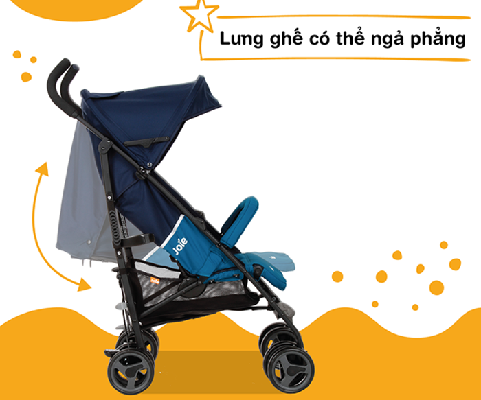- Lưng ghế với nhiều tư thế tùy chọn từ ngồi thẳng tới ngả phẳng, sử dụng được cho bé từ sơ sinh vì không làm cản trở hô hấp bằng bụng của bé.