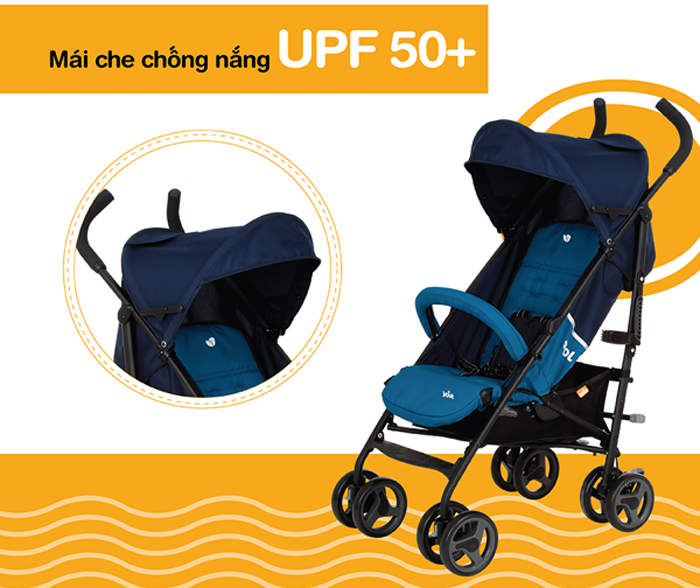 - Mái che chống nắng UPF 50+ (chống nắng đến 98%) dễ dàng điều chỉnh hoặc tháo rời.
