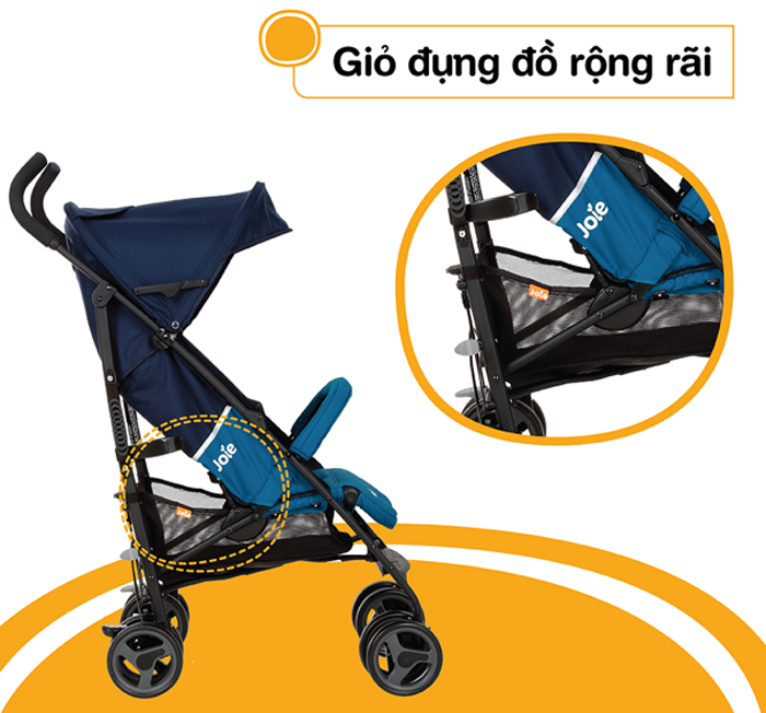 - Khung xe chắc chắn, dễ dàng gập gọn với 2 lựa chọn mang theo (ba mẹ có thể đẩy bằng tay cầm hoặc xách bằng dây đai).