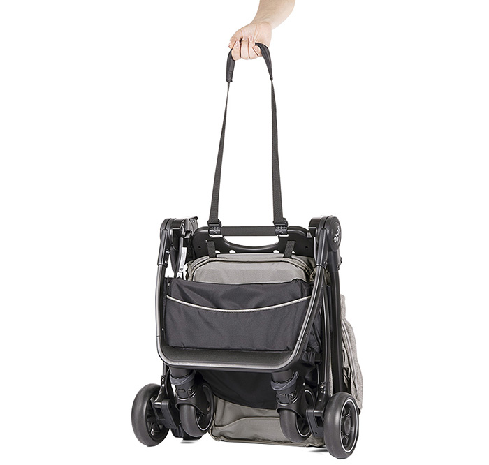 - Sau khi gấp gọn xe đẩy, mẹ có thể dùng dây đeo và túi xách đi kèm để mang theo sản phẩm.