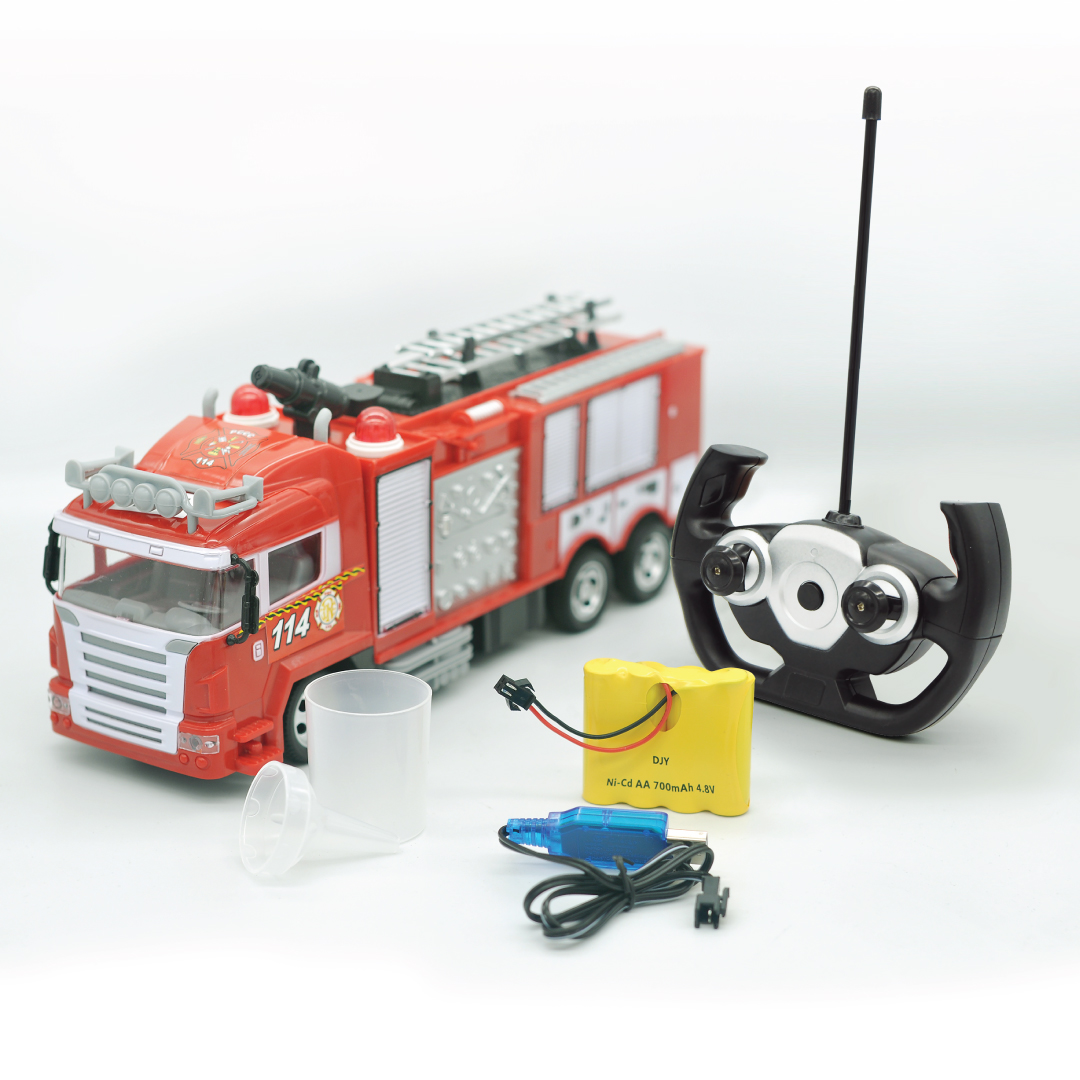 - Đặt biệt bé có thể đổ nước vào khoang xe và sử dụng điều khiển từ xa cho xe chạy và phun nước tự động, tầm xa phun nước gần 2m