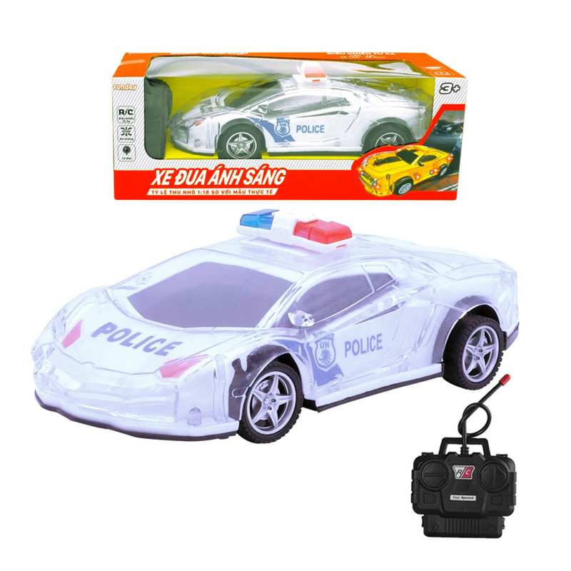 Xe đua điều khiển từ xa có đèn FD-0002 với chủ đề xe cảnh sát làm nhiệm vụ mang đến cho bé những trải nghiệm thú vị cùng những tiếng nhạc và ánh sáng chớp nháy phát ra từ bóng đèn tí hon trên xe điều khiển. Bộ đồ chơi được sản xuất bằng nhựa cao cấp với độ bền màu khá cao khi sử dụng qua một thời gian dài. Các chi tiết của xe điều khiển có thể lắp ráp một cách dễ dàng, phím bấm trên bộ điều khiển dễ sử dụng, vừa kích thước ngón tay của bé