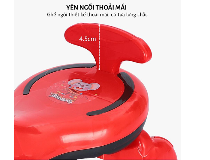 - Phía sau có tựa lưng để bé ngồi không bị mỏi lưng