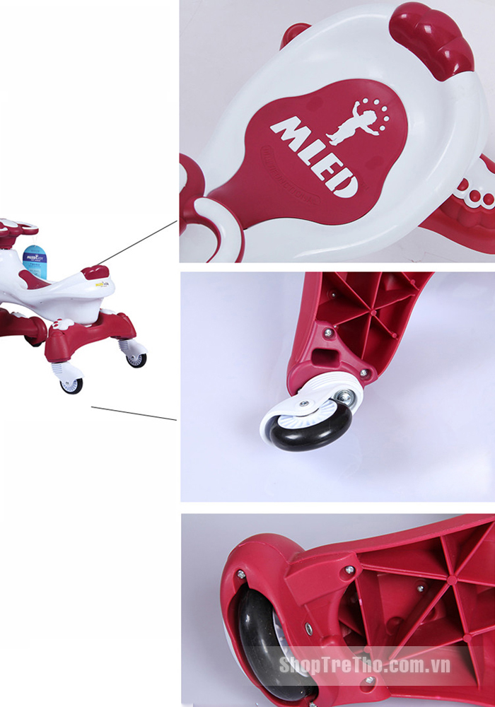 - Di chuyển bằng sức đẩy của chân hoặc lắc cần lắc bằng tay với hệ thống bánh trước độc đáo.