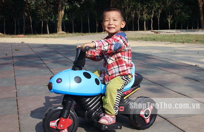 Thiết kế kiểu mô tô đua địa hình, nhỏ gọn độc đáo, thuận tiện khi mang đi động cơ khỏe có thể tải tới 40kg, trong phạm vi nhỏ hẹp vẫn chơi thích thú, vỏ bọc bằng chất liệu nhựa cao cấp, chắc chắn, an toàn xe 3 bánh điện trẻ em có cả chế độ lùi, yên xe được thiết kế có chỗ tựa lưng.