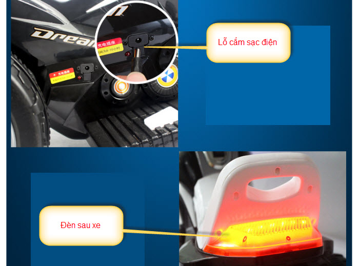 Đồ chơi xe điện 2 moto với thiết kế 3 bánh vững chãi