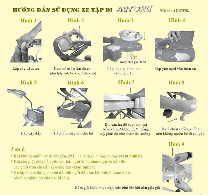 Xe Tập Đi Cho Bé Autoru AUBW02 - Có cây đẩy và lót chân sẽ là người bạn đồng hành đáng tin cậy cùng bé trong giai đoạn chập chững tập đi. Sản phẩm có nhạc, với thiết kế độc đáo, an toàn và màu sắc họa tiết đáng yêu chắc chắn sẽ khiến bé thích thú và siêng tập đi hơn.