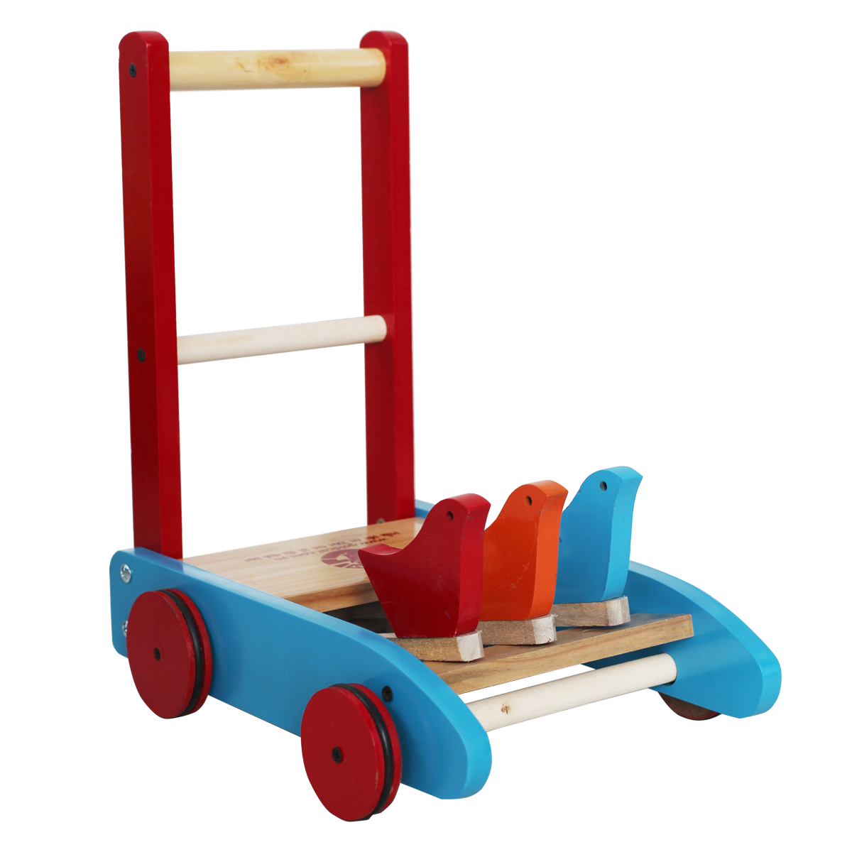 Họa tiết chú gà nhiều màu sắc cùng tay đẩy an toàn, chống trơn, tay vịn chắc chắn bằng gỗ không hại tay của bé