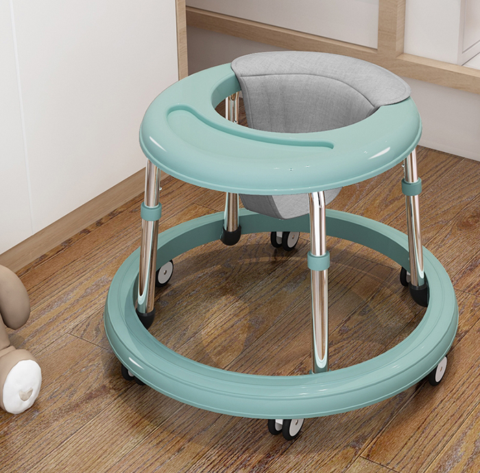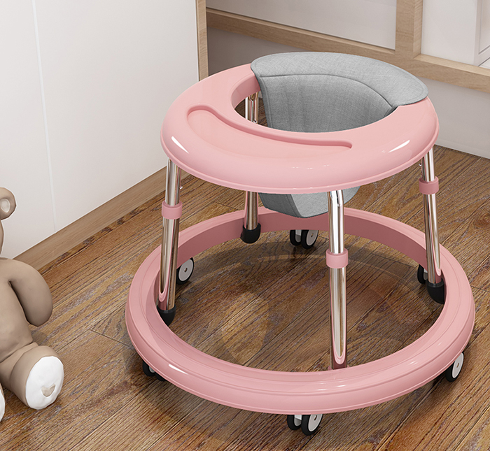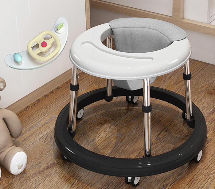 - Khung xe bằng kim loại chắc chắn, thiết kế hình tròn, tránh cho bé không bị va gót chân vào khi tập đi, bé có thể ngồi hay đứng đều thoải mái