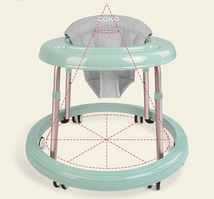 Xe tập đi tròn Zoko với đảm bảo sự an toàn tuyệt đối cho trẻ với chất liệu được chọn lọc tỉ mỉ: giá đỡ bằng kim loại vững chắc, ghế ngồi bằng vải thông thoáng êm ái, bánh xe bằng cao su tự nhiên giúp bé di chuyển dễ dàng. Đặc biệt, xe có thiết kế vải kê chân để bé có thể cho chân lên khi mỏi.