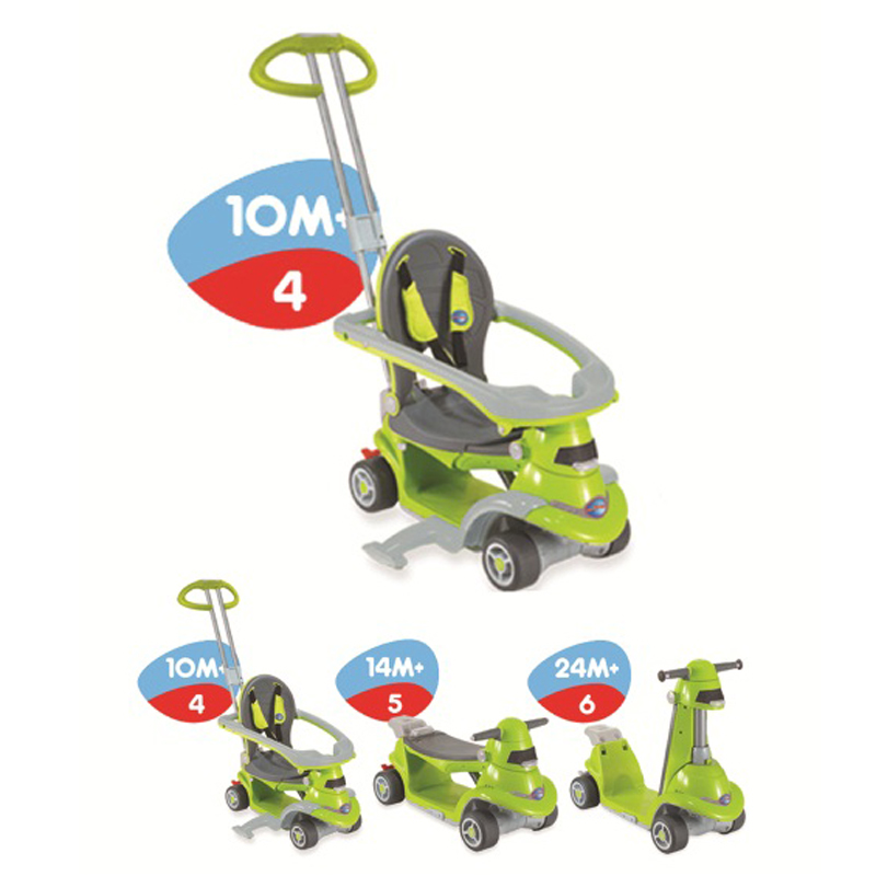 - Trẻ tròn 2 tuổi, phần ghế ngồi của xe được tháo ra và nâng cổ xe lên cao để thành một chiếc xe scooter năng động cho trẻ thoải mái chơi đùa cùng bạn bè.
