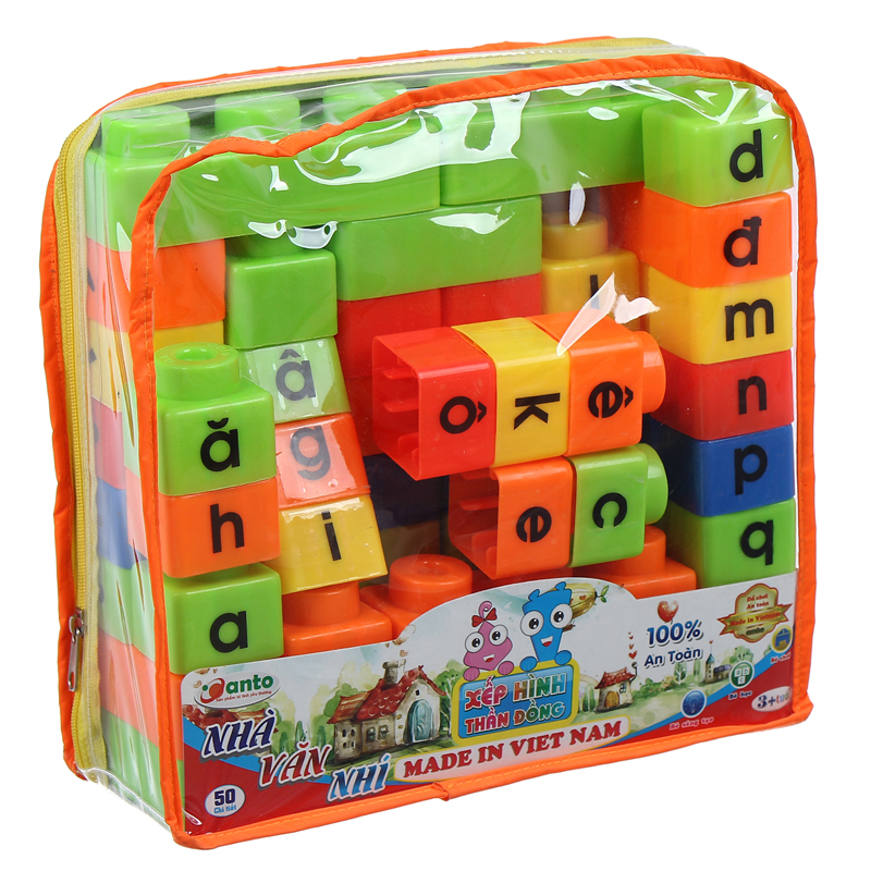 Xếp hình thần đồng - Nhà văn nhí Anto81 (3+) được làm từ chất liệu nhựa nguyên sinh, gồm 50 chi tiết để bé có thể ráp ra nhiều hình khác nhau. Đặc biệt, trên mỗi miếng ghép có in hình chữ cái và màu sắc khác nhau, bé sẽ học được cái đọc chữ cái, nhận diện màu sắc trong quá trình chơi.