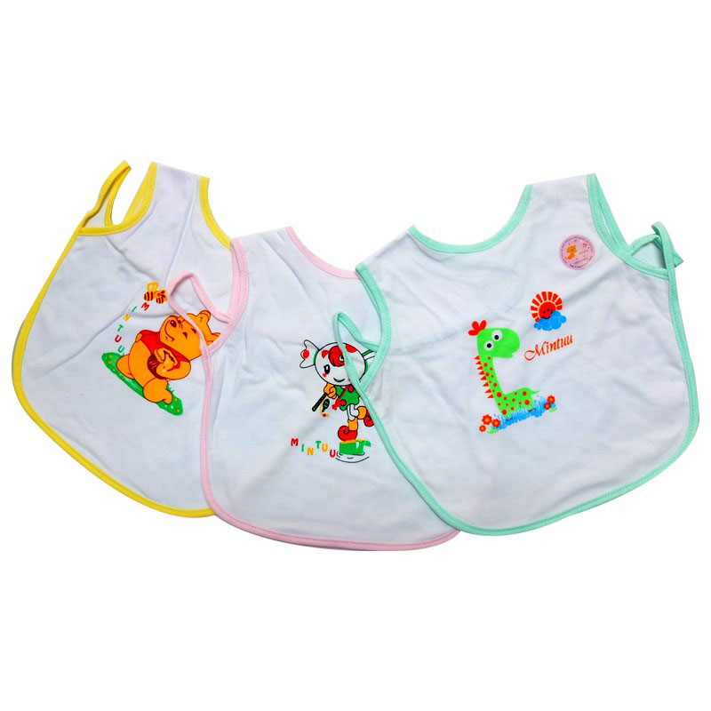 Yếm áo cho bé Mintu cotton 100% có nhiều size được làm bởi 2 lớp vải rất mềm mại, yếm áo cho bé Mintu in hình sẽ giúp giữ vệ sinh cho bé tốt nhất. Ngoài chức năng giữ vệ sinh cho bé yêu, yếm còn giữ ấm ngực cho bé. Có nhiều mầu sắc và hình ảnh để chọn lựa.