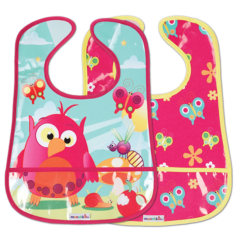 Yếm ăn Munchkin 34049 có tráng nilon bên ngoài bề mặt, giúp bé ăn uống hợp vệ sinh hơn