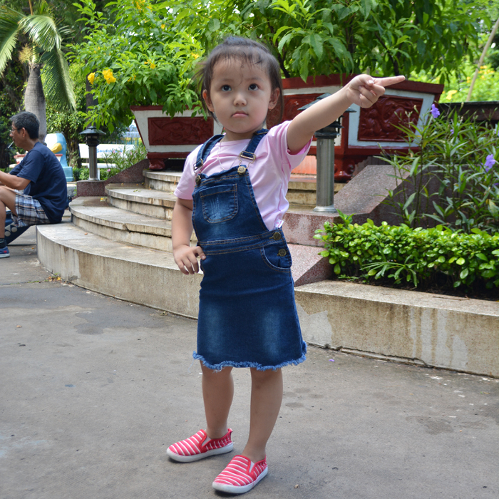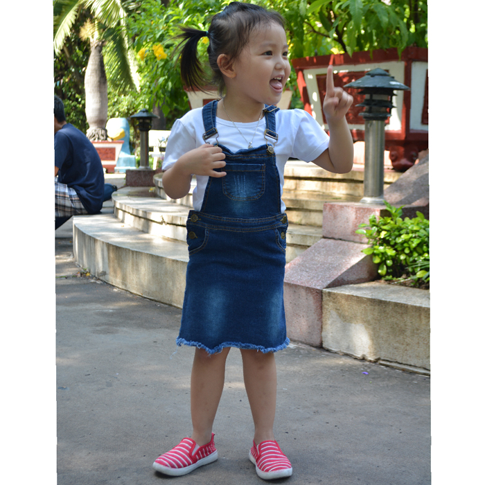 -Thiết kế thời trang, mẹ có thể kết hợp váy dạng yếm sành điệu với áo sơ mi, áo phông mang đến phong cách khỏe khoắn mà không kém phần điệu đà cho trẻ