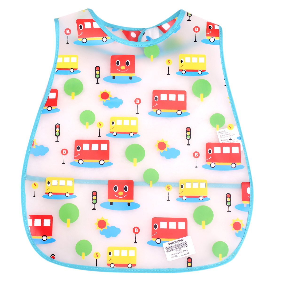 Yếm nilon 0168 xuất khẩu in hình giúp bữa ăn của bé giảm bớt bề bộn và dễ dàng vệ sinh. Thức ăn rơi ra sẽ được giữ lại bên trên yếm. Sản phẩm có màu sắc đẹp mắt sẽ làm con bạn thích thú mỗi khi sử dụng. Yếm giúp mẹ tiết kiệm thời gian, công sức, và chăm sóc bé một cách tốt nhất.